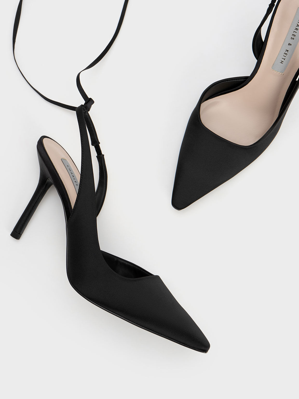 サテンならではの上品な風合いに、レースアップの色気のあるデザインが足元を上品に彩ります。