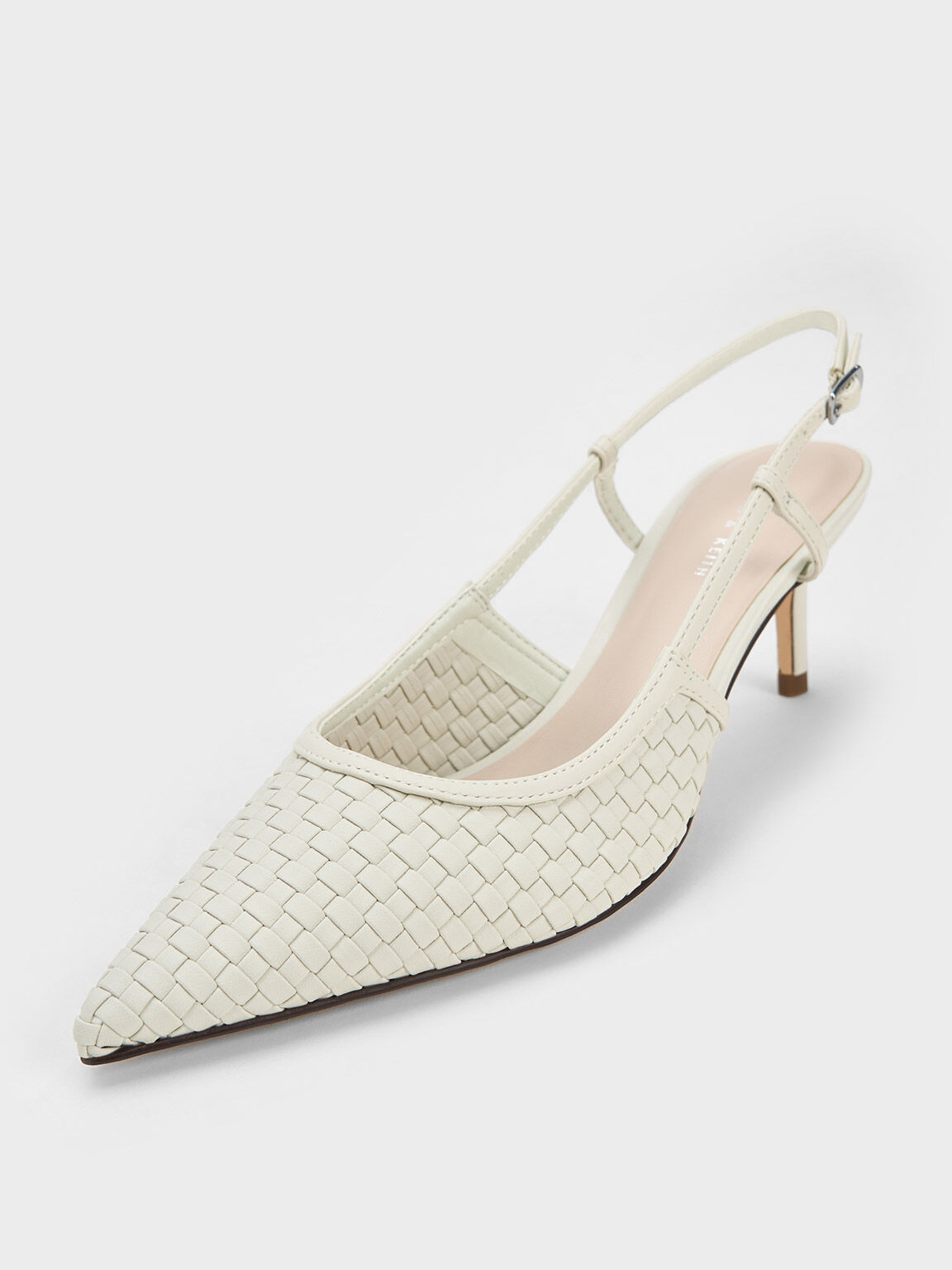 ウーブン スリングバックパンプス - ホワイト
