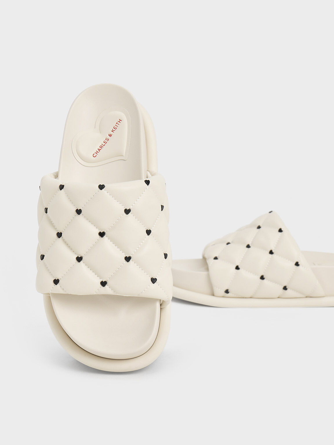 Dahlia ダリア パッドキルトハートプリントサンダル - チョーク