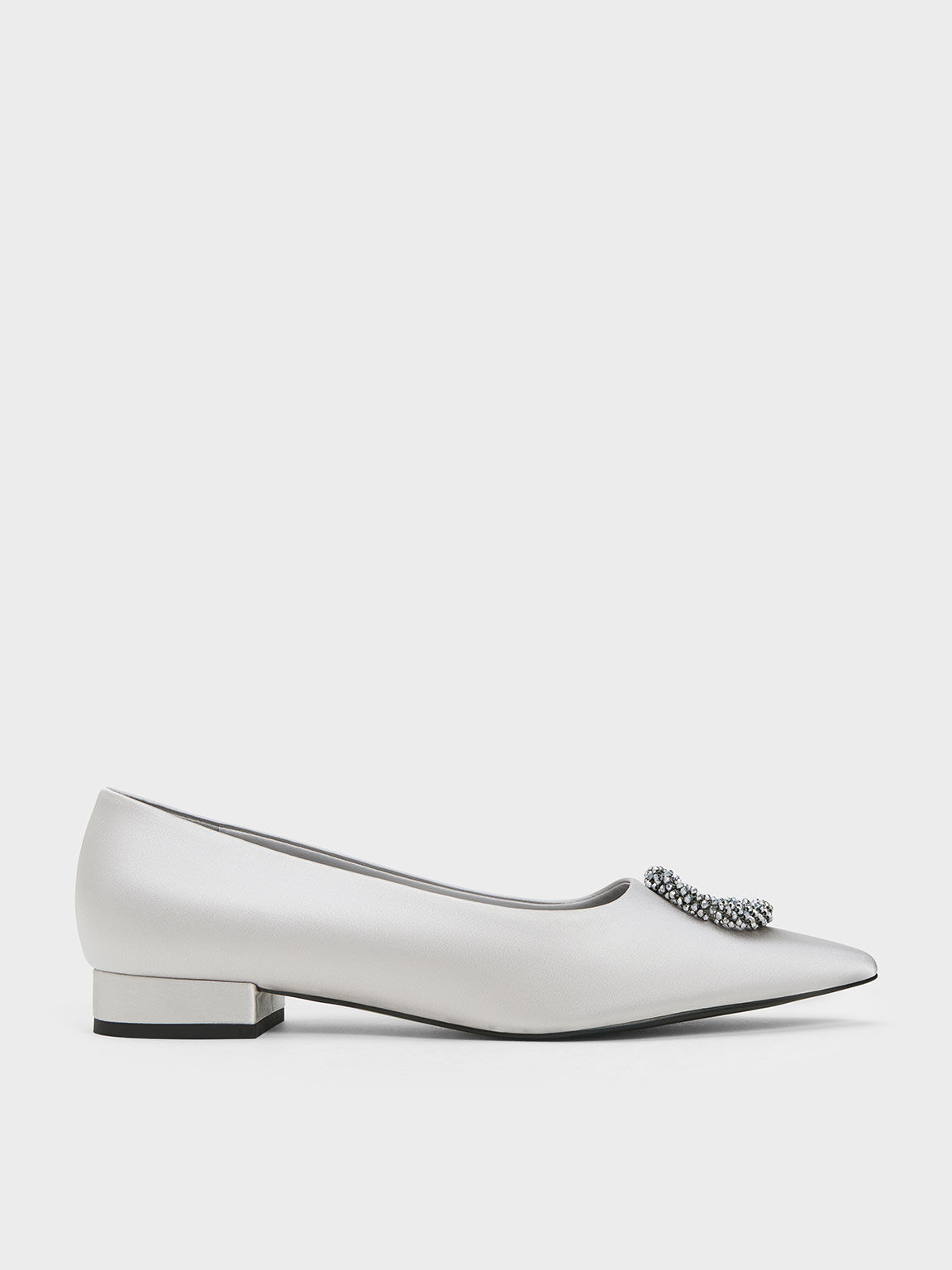 アッパーに華やかなビーズモチーフをトッピングした、リッチな印象のフラットシューズ。
