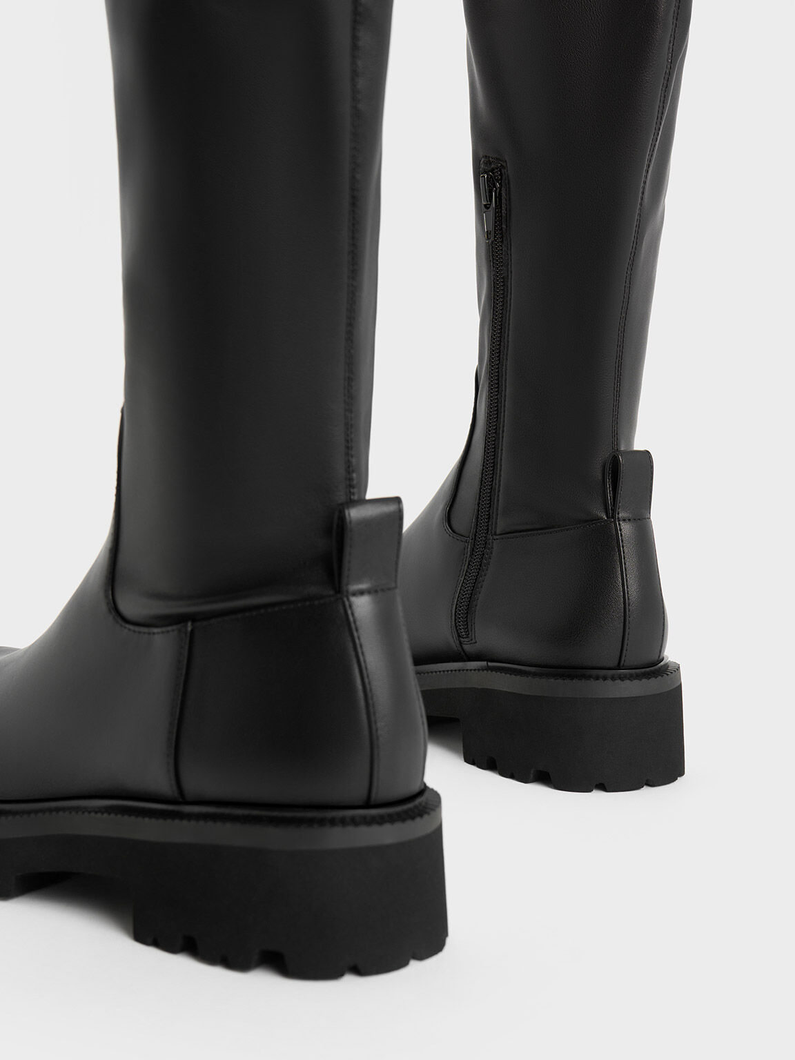 サイドジップ プラットフォームサイハイブーツ - ブラック