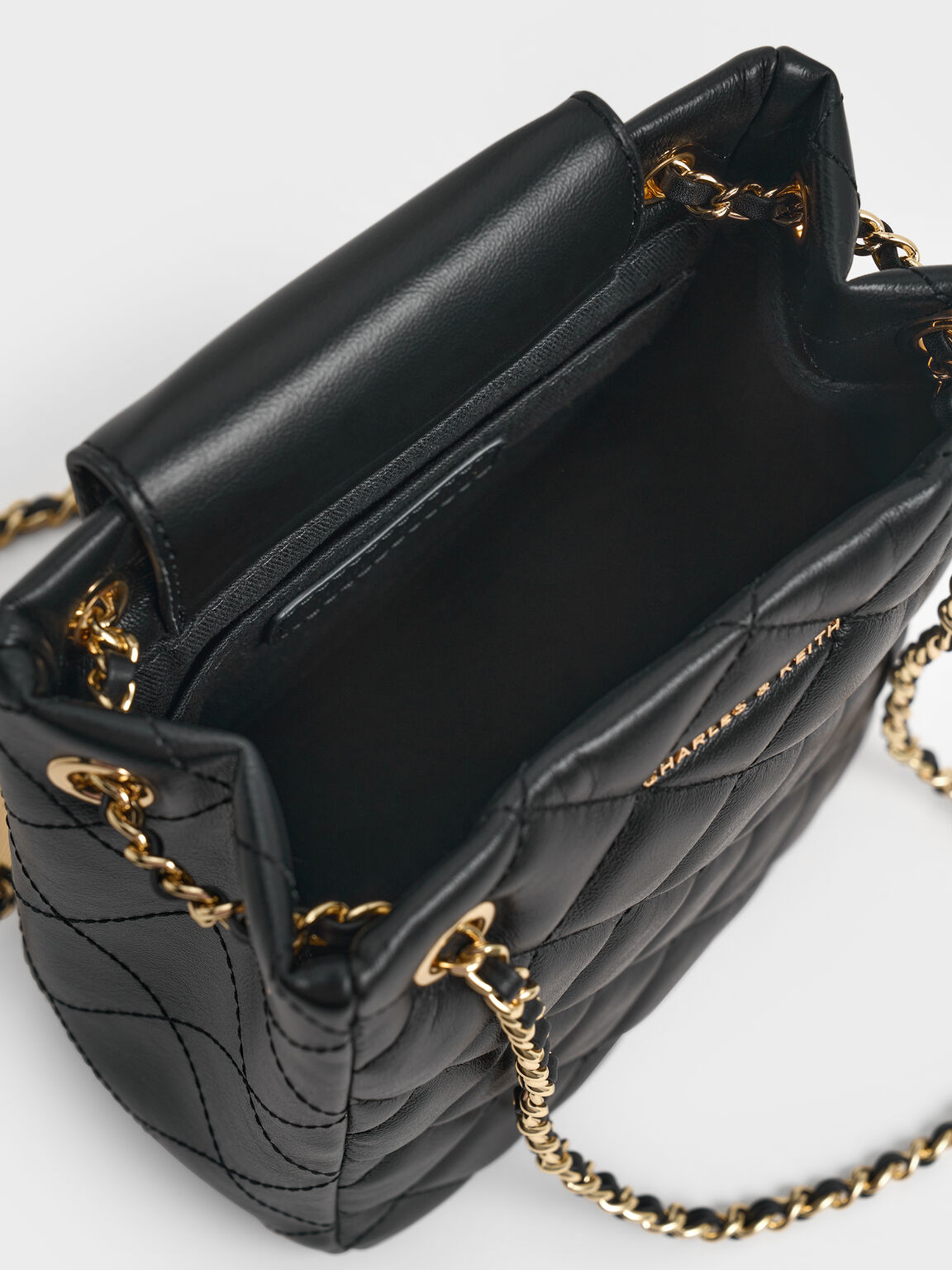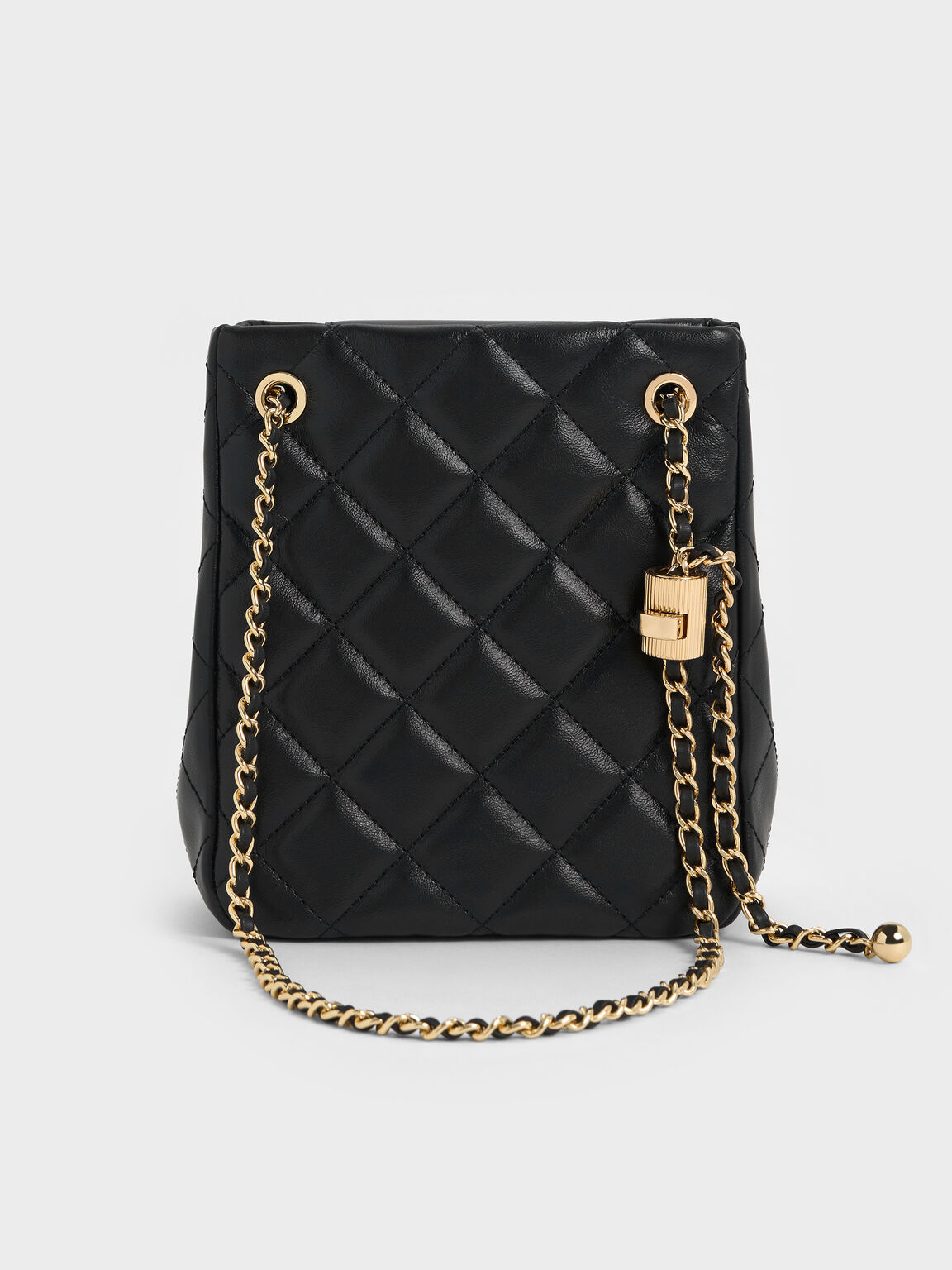 端正なスクエア型のフォルムに、キルティングならではのふっくらとした優しいデザイン、そこに細めのレザー巻きチェーンストラップがが上品に溶け込んだ一品です。
