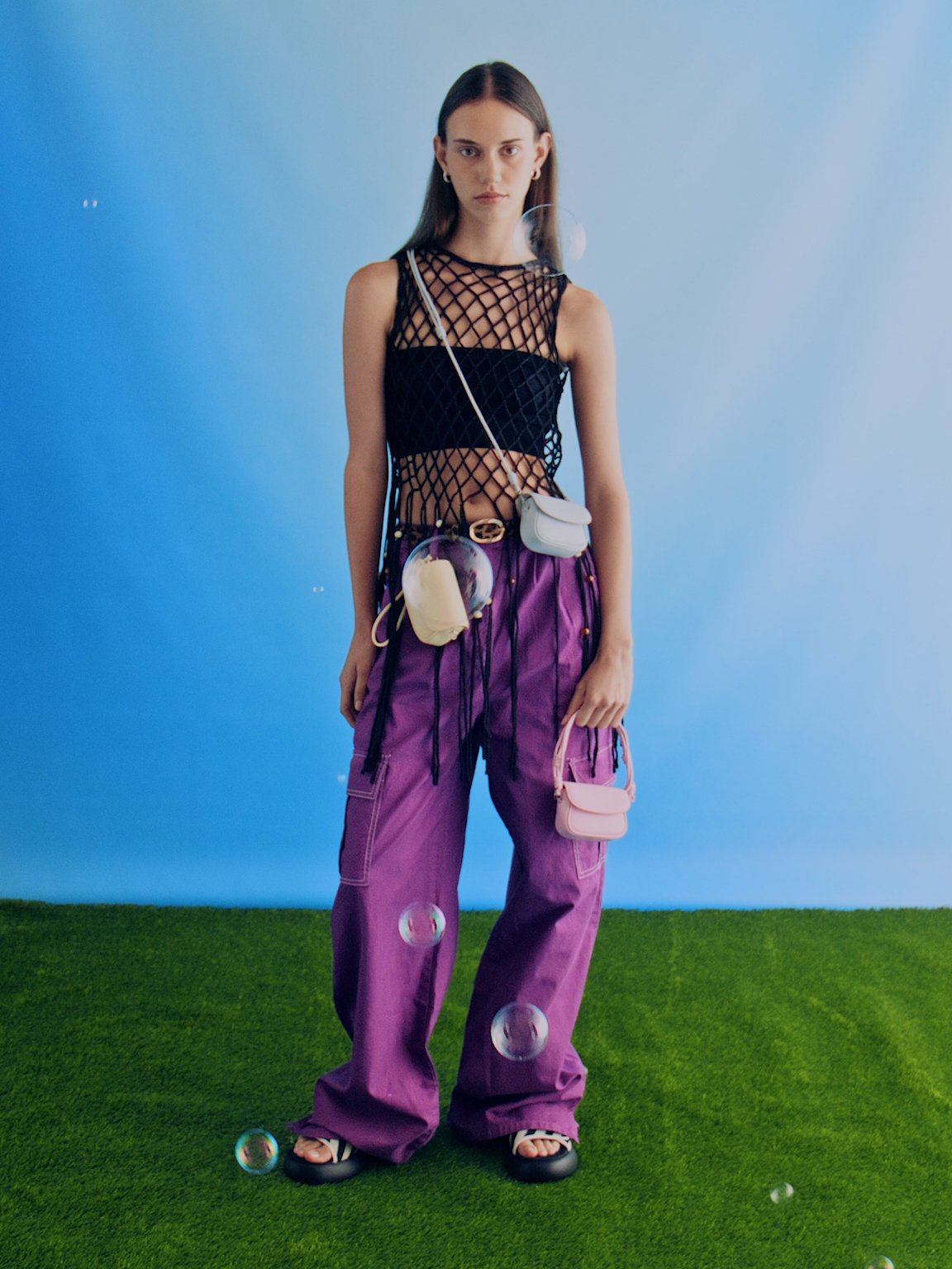 バッグをそのままミニチュア化したような、とびきりキュートなマイクロバッグ風ポーチ。