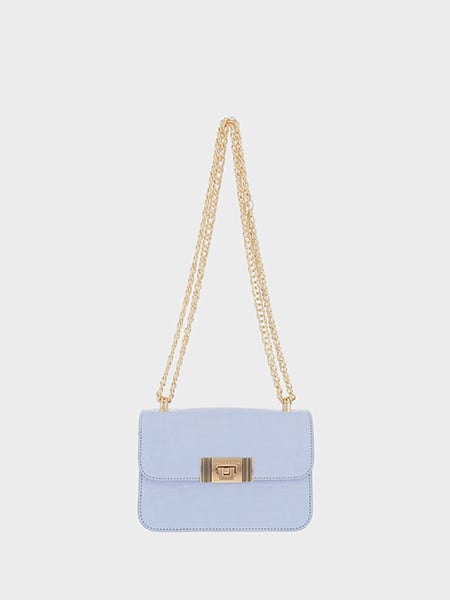 Model Ashley Yuka puts together an eclectic ensemble by accessorising a quirky outfit with the feminine Marise croc-effect trapeze bag — the youthfulness of her street-chic look is balanced by the ladylike elegance of the lovely blue bag.