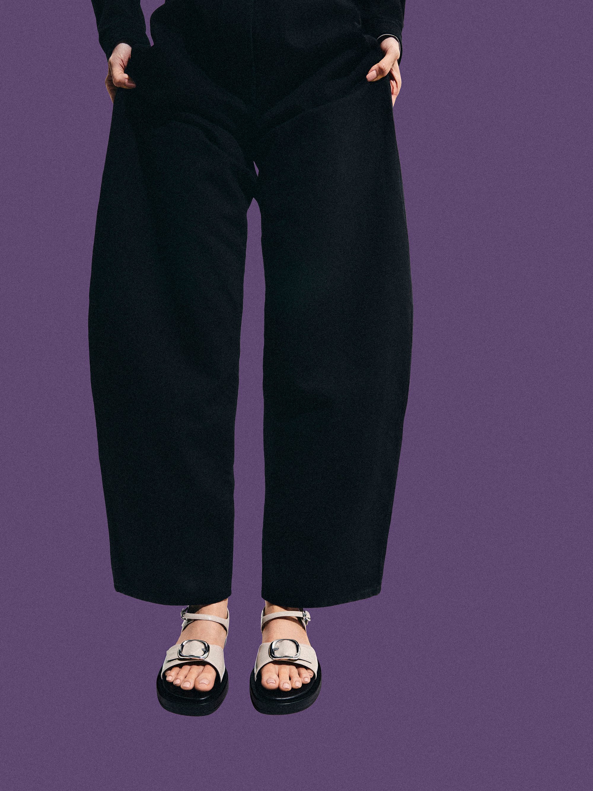 バックル フラットフォームサンダル, ブラックボックス, hi-res